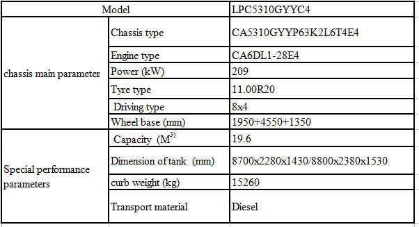 底盤主要性能參數(shù) | 底盤型號 | CA5310GYYP63K2L6T4E4 | |